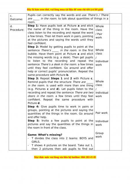 Step 1: Have pupils look at Picture a and elicit Whole Procedure: