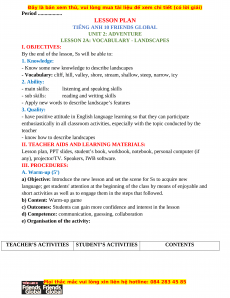 Giáo án Unit 2: ADVENTURE Tiếng Anh 10 Chân trời sáng tạo