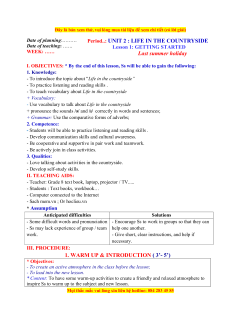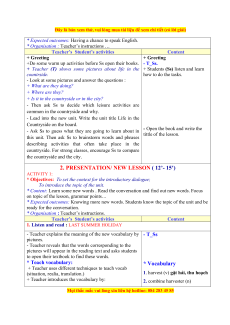 - Love talking about activities in the countryside. - Develop self-study skills. II. TEACHING AIDS: