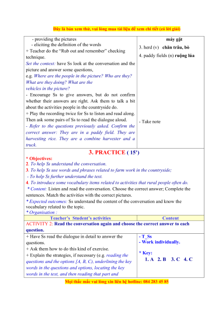 harvesting rice. They are a combine harvester and a truck. 3. PRACTICE ( 15’) * Objectives: