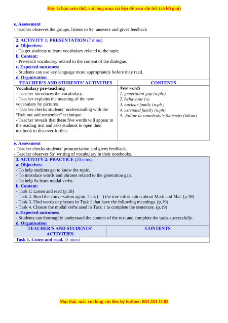 - Students can thoroughly understand the content of the text and complete the tasks successfully. d. Organisation
