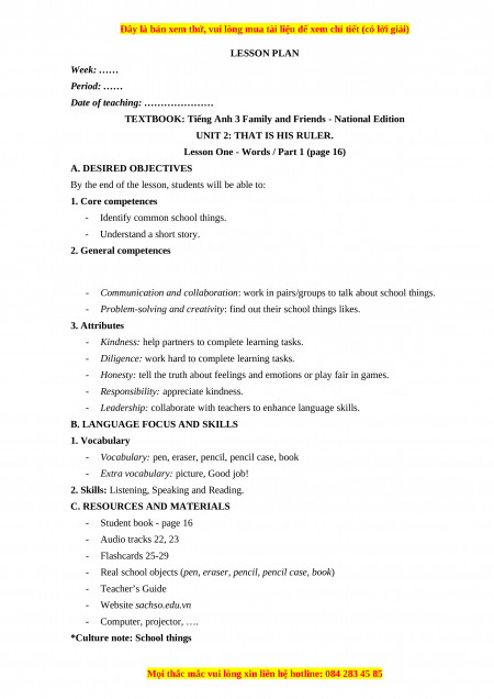 Real school objects (pen, eraser, pencil, pencil case, book) - Teacher’s Guide - Website sachso.edu.vn - Computer, projector, ….