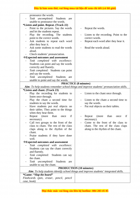 their tables. They point to the things when they hear them. - Repeat (more than once if - Repeat (more than once if necessary). necessary). -