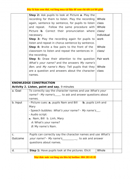 - Picture cues: a. pupils Nam and Bill b. pupils Linh and Mary