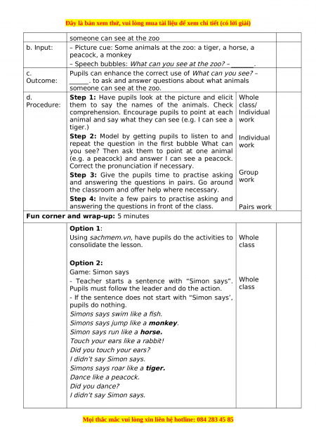 Using sachmem.vn, have pupils do the activities to Whole consolidate the lesson. class Option 2: Game: Simon says