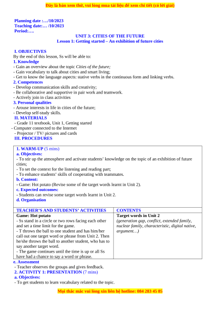 - Arouse interests in life in cities of the future; - Develop self-study skills. II. MATERIALS