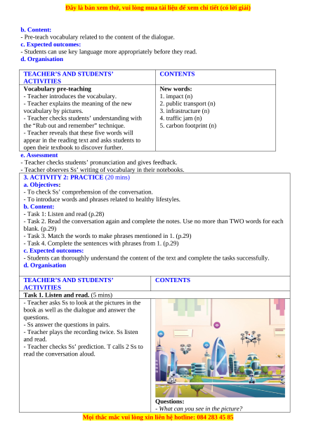 - Teacher explains the meaning of the new 2. public transport (n) vocabulary by pictures. 3. infrastructure (n)