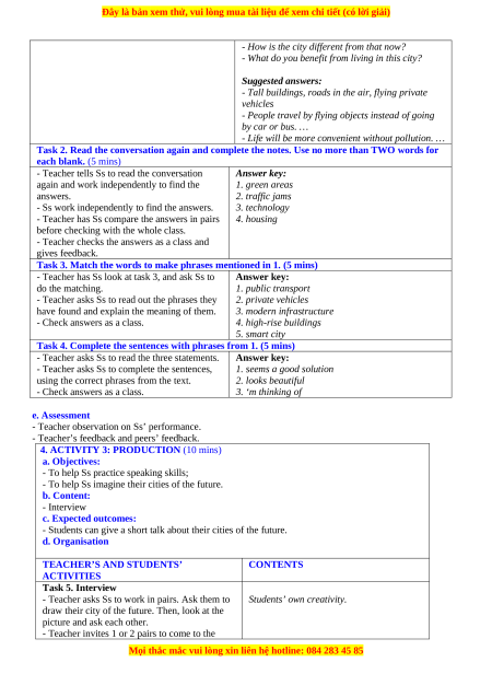 - To help Ss imagine their cities of the future. b. Content: - Interview c. Expected outcomes: