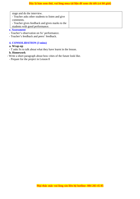 - Teacher’s feedback and peers’ feedback. 4. CONSOLIDATION (3 mins) a. Wrap-up