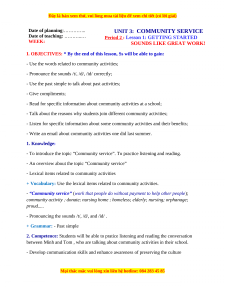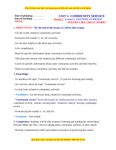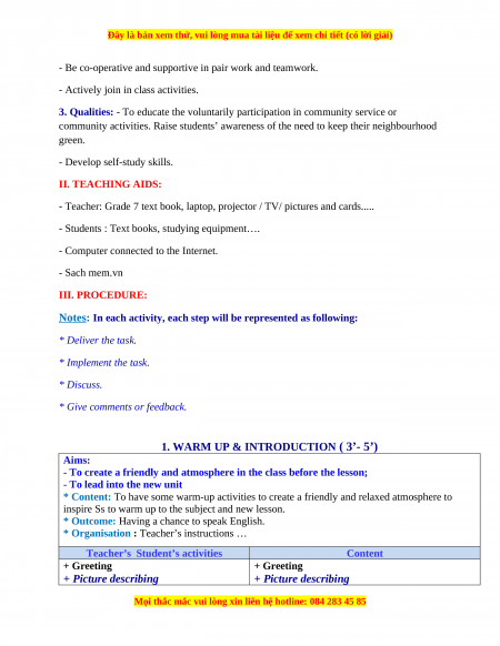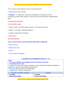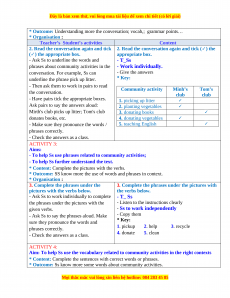 community activities. Raise students’ awareness of the need to keep their neighbourhood green. - Develop self-study skills. II. TEACHING AIDS: