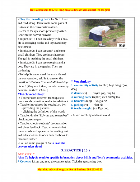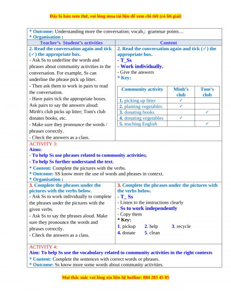 about? (They are talking about community 1. community activity (n.phr.) hoạt động cộng