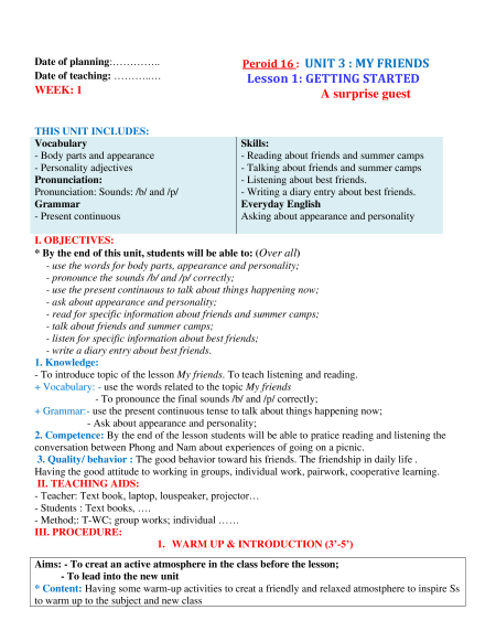 Peroid 16 : UNIT 3 : MY FRIENDS
