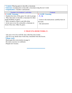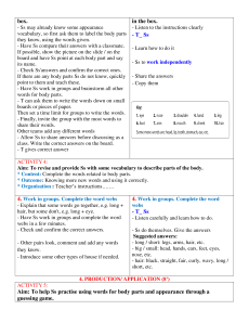 Lesson 1: GETTING STARTED WEEK: 1 A surprise guest THIS UNIT INCLUDES: Vocabulary Skills: - Body parts and appearance