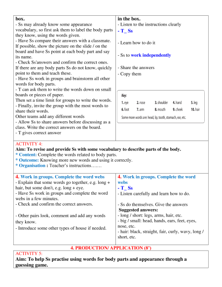 - Method;: T-WC; group works; individual …… III. PROCEDURE: