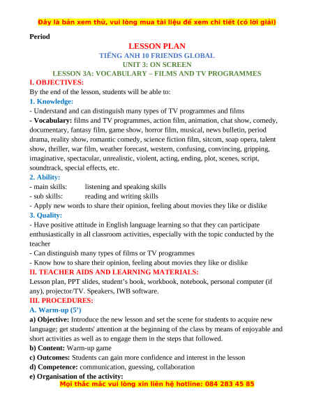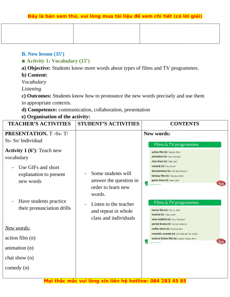 LESSON 3A: VOCABULARY – FILMS AND TV PROGRAMMES I. OBJECTIVES: