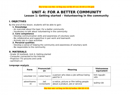 Giáo án Unit 4: For a better community Tiếng anh 10 Global success
