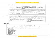 Lesson 1: Getting started – Volunteering in the community I. OBJECTIVES