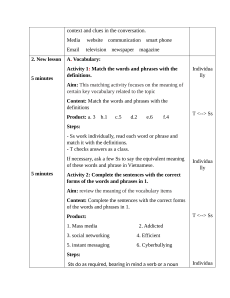 Activity 1: Match the words and phrases with the Individua definitions. lly 5 minutes