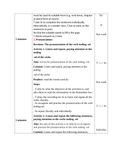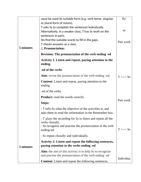 - Ss recognise and practise the pronunciation of the verb ending-ed. T <--> Ss