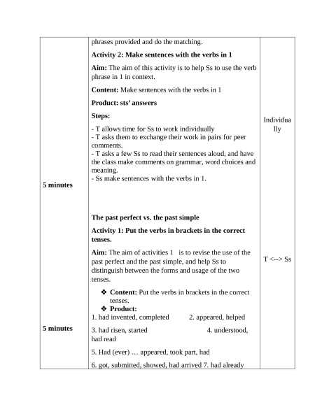 past perfect and the past simple, and help Ss to