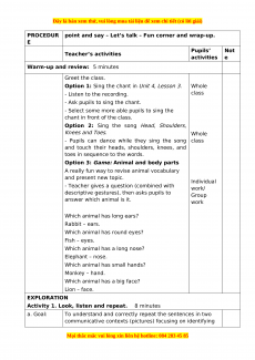 PROCEDUR point and say – Let’s talk – Fun corner and wrap-up. E Pupils’ Not Teacher’s activities activities e