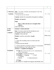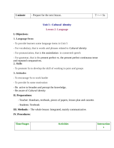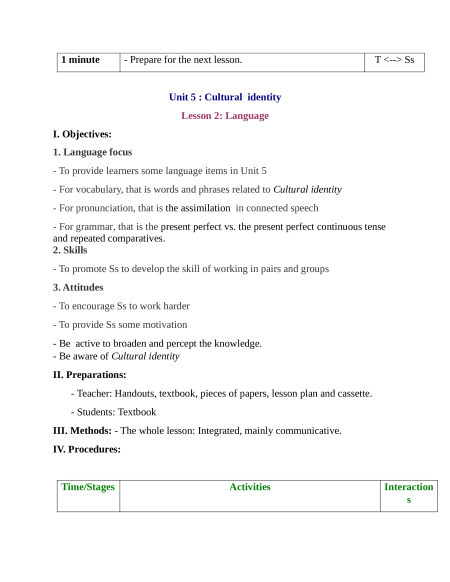 C. Methods: - The whole lesson: Integrated, mainly communicative. D. Procedures: Time/Stages Activities Interaction s