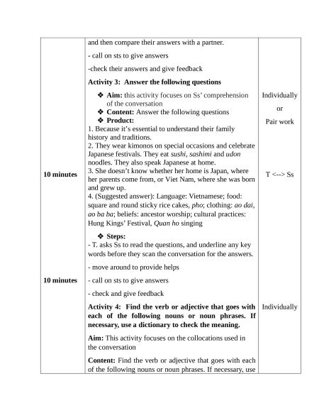 words before they scan the conversation for the answers. - move around to provide helps 10 minutes - call on sts to give answers - check and give feedback