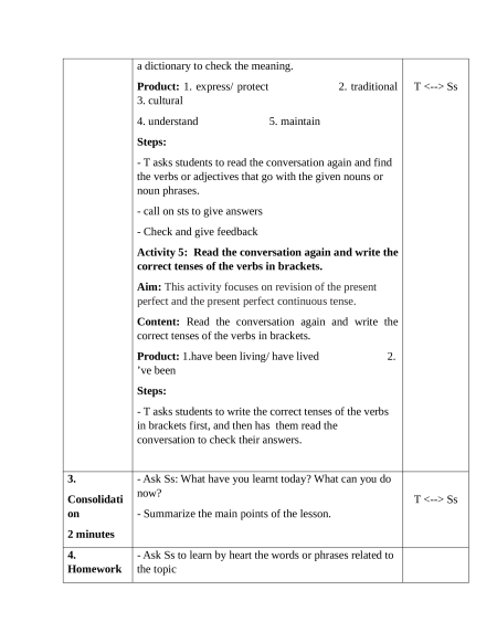 - Ask Ss: What have you learnt today? What can you do now? Consolidati T <--> Ss on