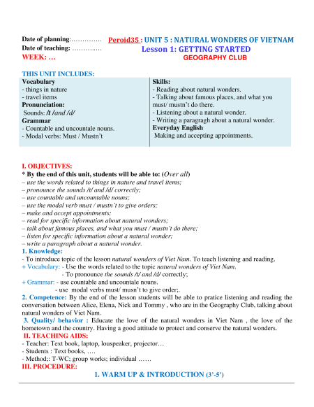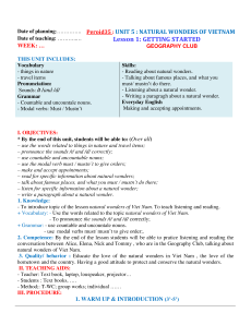 Date of planning:………….. Peroid35 : UNIT 5 : NATURAL WONDERS OF VIETNAM