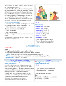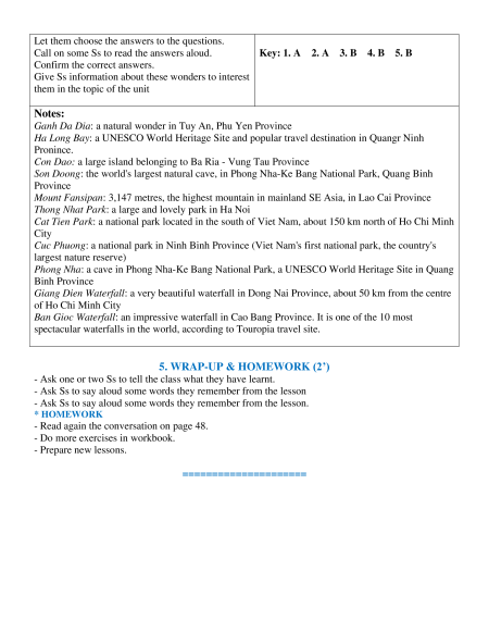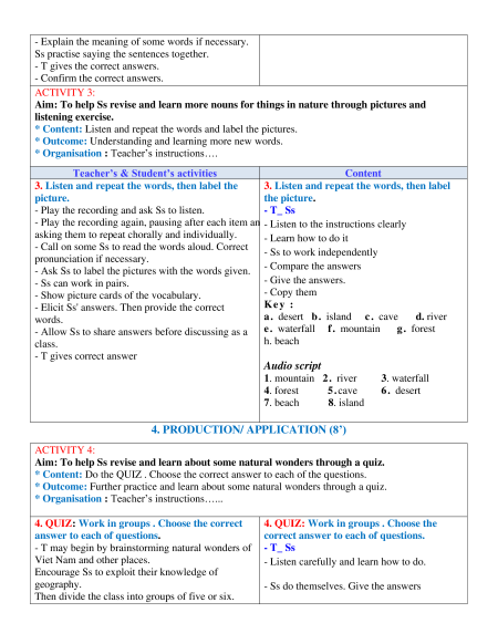 + Vocabulary: - Use the words related to the topic natural wonders of Viet Nam.