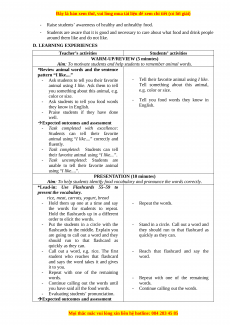 around them like and do not like. D. LEARNING EXPERIENCES Teacher’s activities Students’ activities