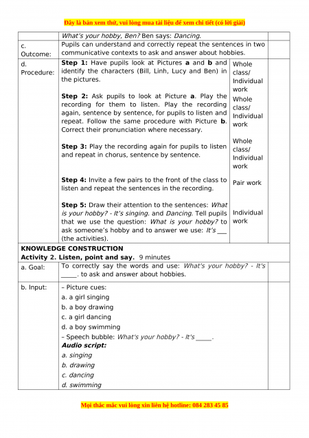 hobby?). Point at Picture a and have pupils listen Individual