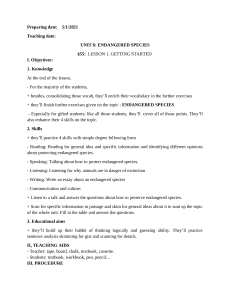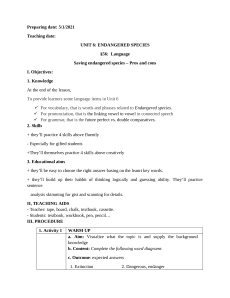 Saving endangered species – Pros and cons I. Objectives: 1. Knowledge At the end of the lesson,