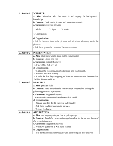 c. Outcome: expected answers 1. whale 2. tiger 3. turtle 4. Giant panda d. Organization:
