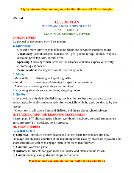 Giáo án Unit 6: Money Tiếng Anh 10 Friends global
