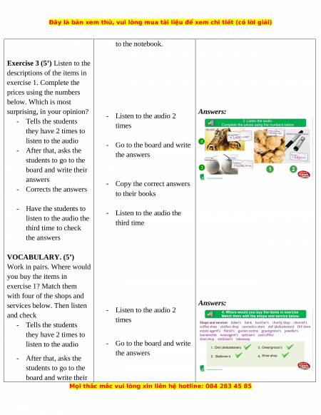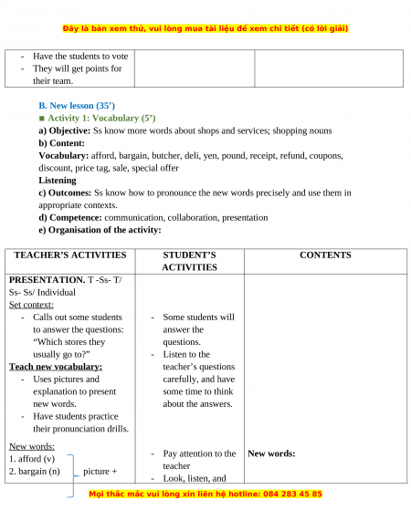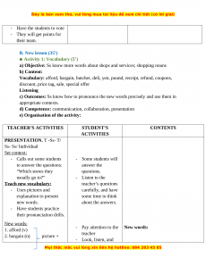 a) Objective: Ss know more words about shops and services; shopping nouns b) Content: