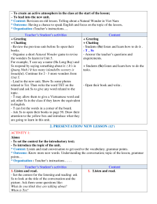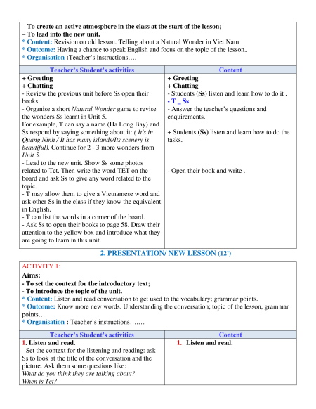 * Content: Revision on old lesson. Telling about a Natural Wonder in Viet Nam