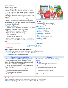- peach flowers (n) hoa đào aloud. - Comment on Ss'answers. - Take notes. 3. PRACTICE (18’) ACTIVITY 2: