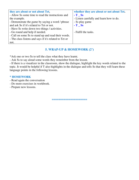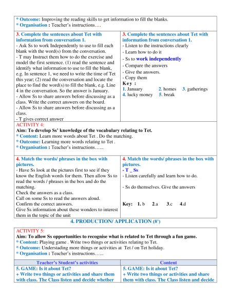 + Vocabulary: - Use the words related to the topic Tet holiday in Viet Nam.