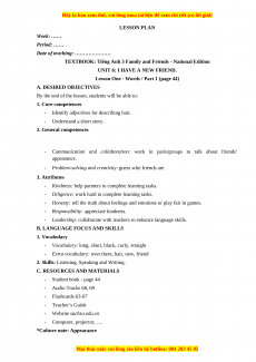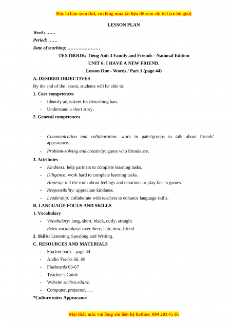 C. RESOURCES AND MATERIALS - Student book - page 44 - Audio Tracks 68, 69 - Flashcards 63-67 - Teacher’s Guide - Website sachso.edu.vn - Computer, projector, ….