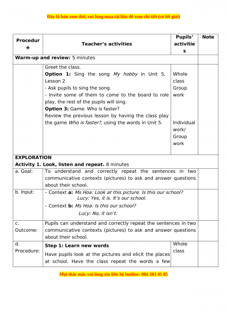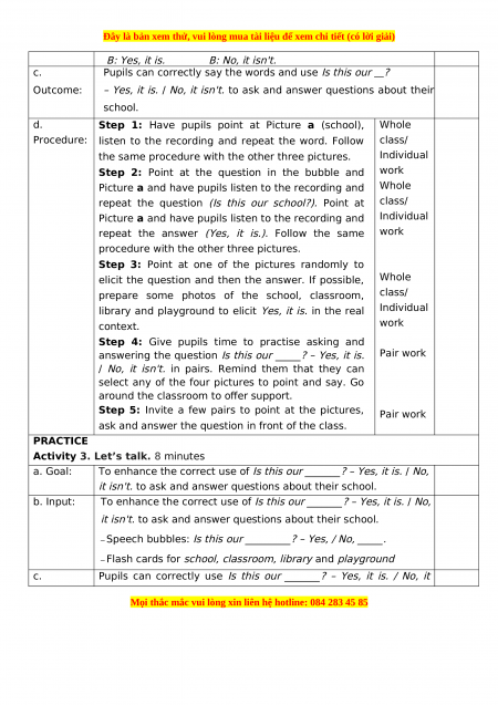 – Context a: Ms Hoa: Look at this picture. Is this our school?