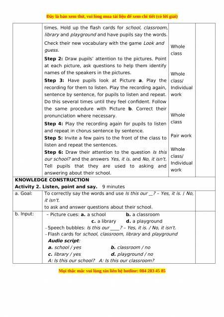– Context b: Ms Hoa: Is this our school? Lucy: No, it isn’t. c.