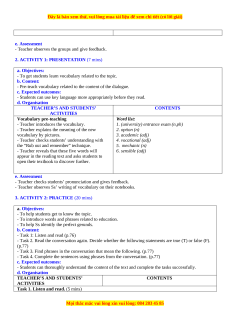 TEACHER’S AND STUDENTS’ CONTENTS ACTIVITIES Vocabulary pre-teaching Word list: