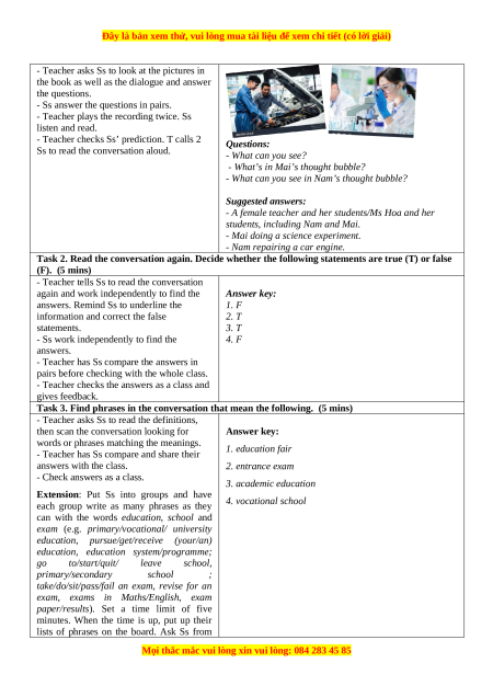 - Task 4. Complete the sentences using phrases from the conversation. (p.77) c. Expected outcomes: