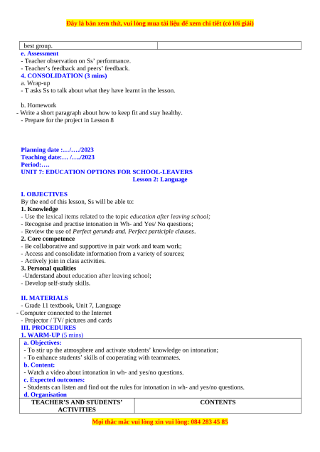 Planning date :…/…./2023 Teaching date:… /…./2023 Period:….