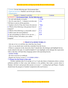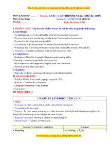 Date of planning:……… Period..: UNIT 7 : ENVIRONMENTAL PROTECTION