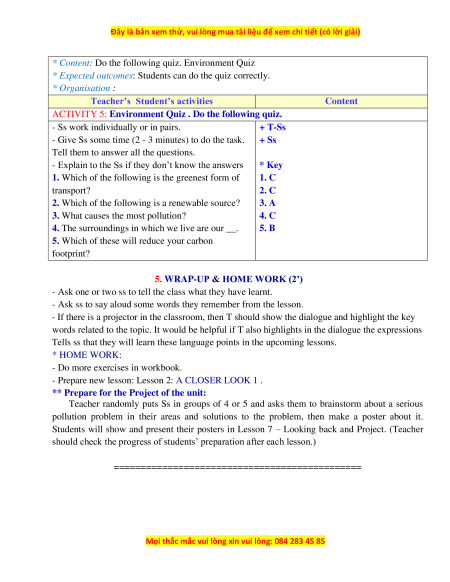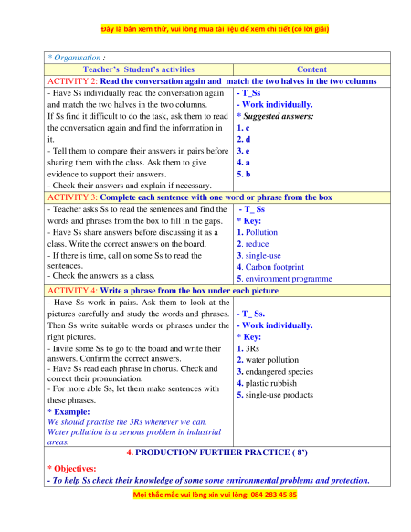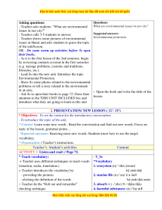 - Raise the students’ awareness about enviromental protection. II. TEACHING AIDS: