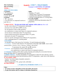 Lesson 1: GETTING STARTED WEEK: … What’s on today? THIS UNIT INCLUDES: Vocabulary Skills: - TV programmes - Reading a TV guide. Pronunciation: