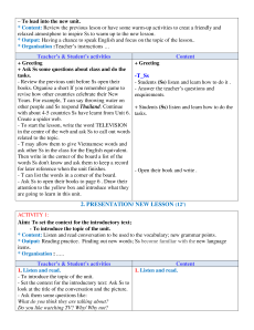 Teacher’s & Student’s activities Content + Greeting + Greeting