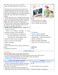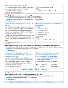 behavior toward asking and giving informations about TV programmes , game shows and characters. II. TEACHING AIDS: